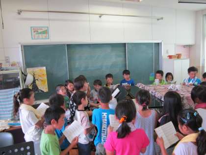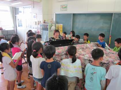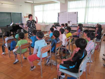 3年音楽科「勇気100%」 1学期の評価について、3年生が分かるようなお話を聞いてから、元気に合唱しました。