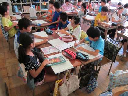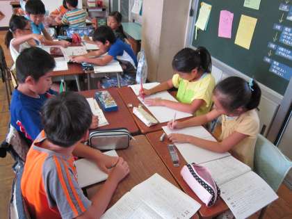 4年国語科「学級で話し合おう」 教科書の例示の話し合いのよいところを見つけて、意見を交換していました。