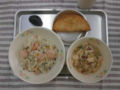 今日のスープは、トマトと玉子のスープです。トマトの色素は、リコピンと言われる色素で、「酵酸化作用」が強いことが分かっています。生活習慣病や老化防止に効果があります。「トマトが赤くなると医者が青くなる」ということわざがありますが、それほどトマトには、人の体を健康にさせる成分がふくまれているということなんですね。