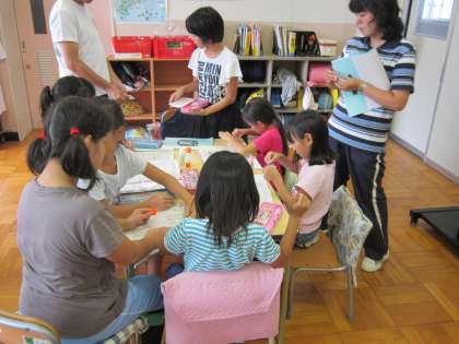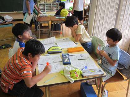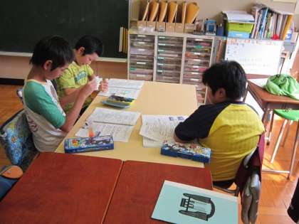 ひまわり学級「生活単元学習」 再来週に近づいた校外宿泊の事前学習です。グループに分かれて、楽しそうに学習していました。