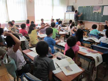 3年国語科「忘れられない おくりもの」 あなぐまの夢について考える授業です。話し合いながら一生懸命に学習していました。