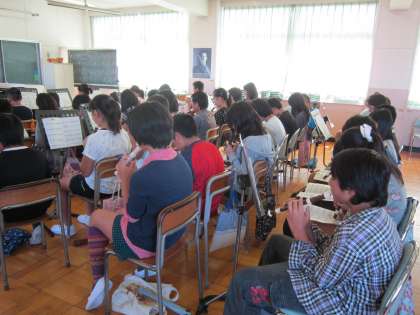 6年音楽科「あまちゃん」 あまちゃんのオープニングソングの合奏です。2学期からはじめた曲ですが、上達してきました。