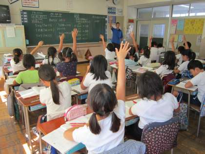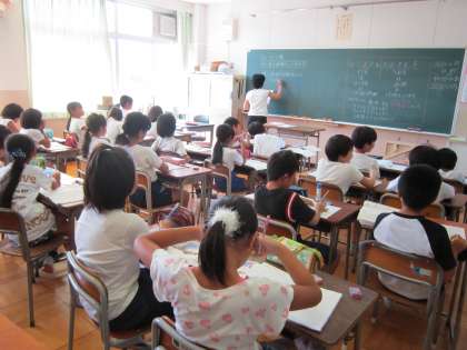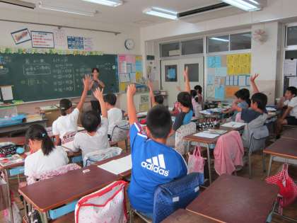 4年算数科「がい数」 四捨五入を学び、およその数を求める学習です。どのくらいを四捨五入するのかよく考え、話し合っていました。