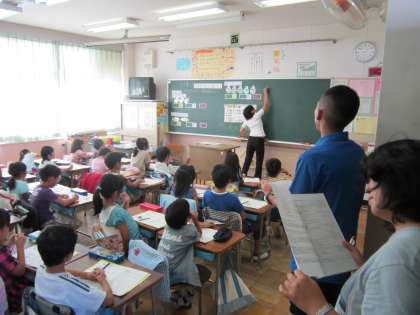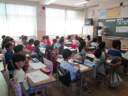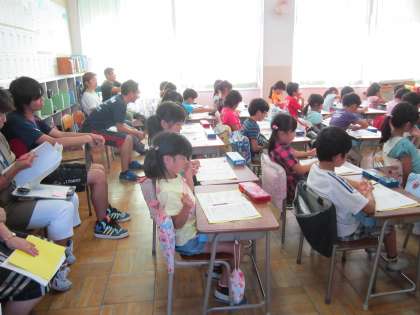 2年算数科「かけ算」 昨日の5時間目は、2年生の研究授業でした。1つのまとまり×いくつ分=ぜんぶの数、かけ算の意味を学習しました。大勢の先生方が見守る中、子供たちは集中して一生懸命学習できました。