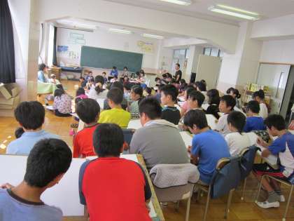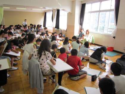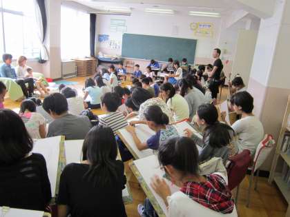 6年図画工作科「ファミリー」 今日は、デッサンの授業でした。さて、モデルは?・・・・・思いもよらぬゲストに、子供たちも大喜びでした。一生懸命に「ファミリー」をデッサンしていました。