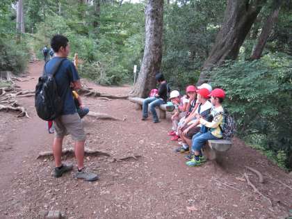 台風が接近し天候が心配でしたが、よい天気になり、3・4年生が高尾山に遠足に行きました。3年生と4年生の混合グループで登山をして、助け合い協力し合って、楽しい一日を過ごしました。