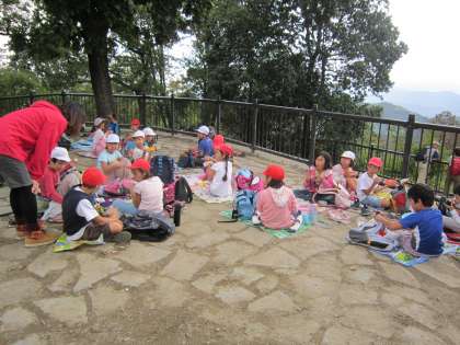 台風が接近し天候が心配でしたが、よい天気になり、3・4年生が高尾山に遠足に行きました。3年生と4年生の混合グループで登山をして、助け合い協力し合って、楽しい一日を過ごしました。