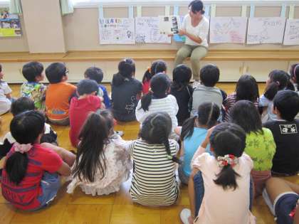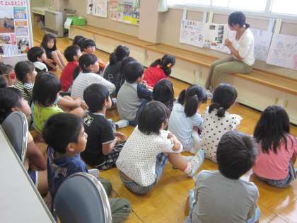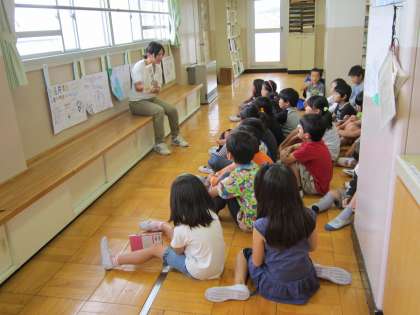 2年国語科「鳥のちえ」 先生がはじめての単元を読み聞かせしました。子供たちは、目を輝かせて聞いていました。