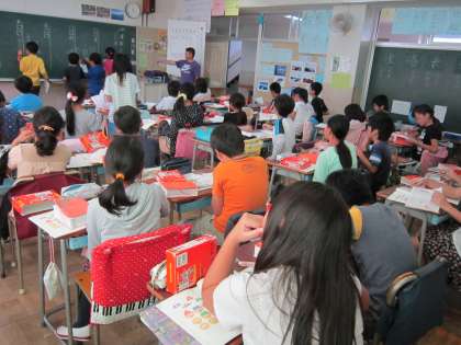 5年国語科「漢字三字でできている言葉」 熟語の学習です。辞書を使いながら、同じ漢字の入った熟語を探して、進んで発表していました。