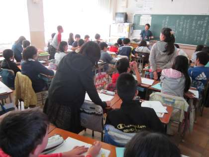 6年国語科「川とノリオ」 気持ちを読み取るために手がかりとなる言葉の授業です。感情を表す言葉、会話文、人物の行動、情景描写、助詞と文末など、言葉を手ががりに気持ちを読み取る学習をしていました。