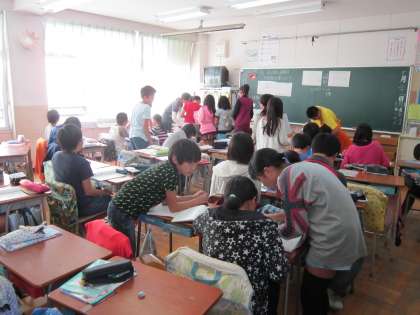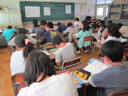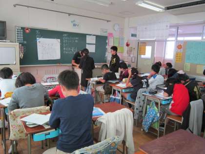 6年算数科「拡大図と縮図」 今日は、実際に拡大図と縮図をかく授業です。友達同士でチェックしたり、先生にみてもらったり、丁寧に学習していました。