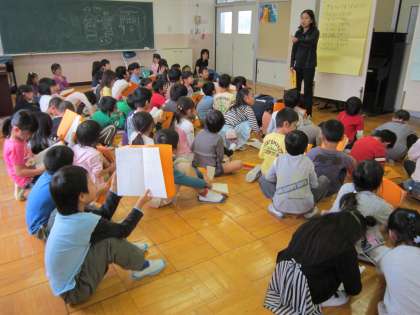 1年音楽科 学芸会に向けて、学年全体で歌の練習をしていました。元気な歌声が教室いっぱいに響いていました。