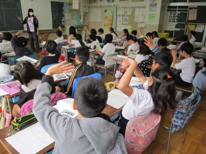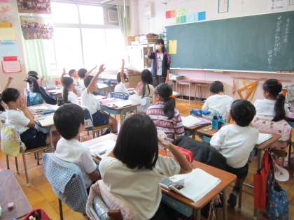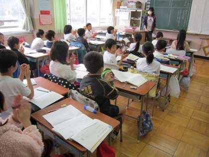 3年国語科「モチモチの木」 物語の読み取りの授業です。第一の場面での登場人物の人柄を読み取り、話し合っていました。