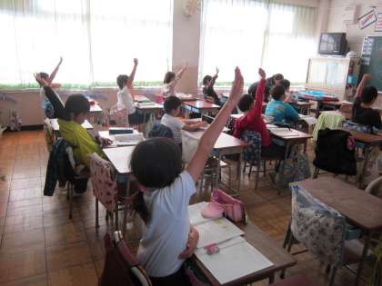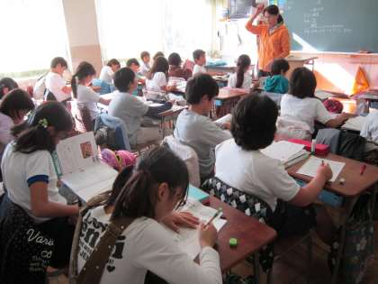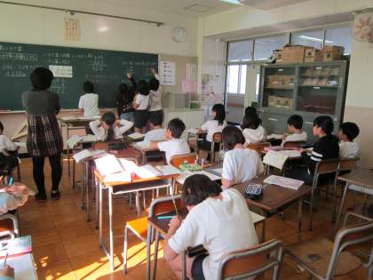 4年算数科「小数のたし算・ひき算」 習熟度別の授業です。小数点の位置に気をつけながら、丁寧に計算していました。