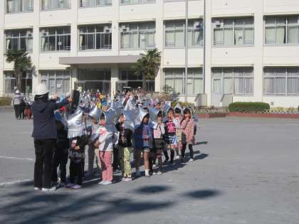 3時間目に地震想定の避難訓練を実施しました。子供たちは真剣に訓練に取り組んでいました。家庭で一人でいる時や外出して遊んでいる時の地震への対応について、家の人とよく話しておくように子供たちに伝えました。