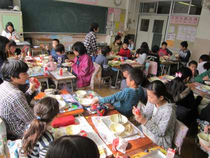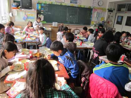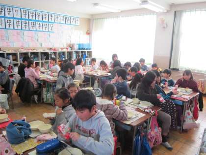 今日は、今学期最後のたてわり班給食・活動です。5年生が6年生にリーダーを引き継ぎ、活躍しました。1年間、6年生ありがとうございました。