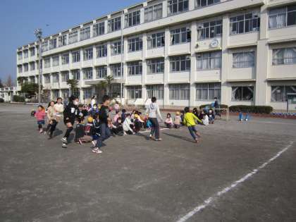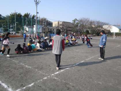 最後の児童集会でした。たてわり班ごとに、十字鬼をして遊びました。集会委員会の児童が1年間の協力に感謝の言葉を述べていました。