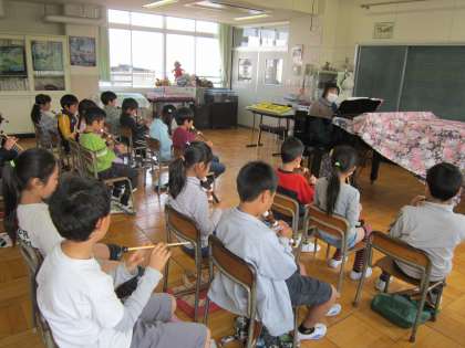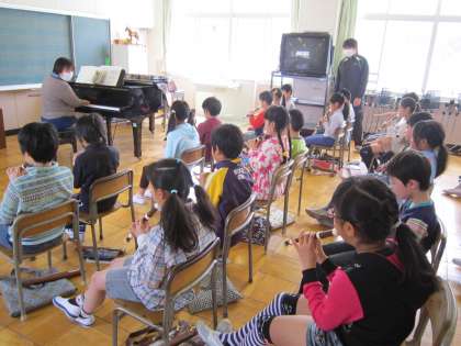 4年音楽科 リコーダーの指使いとタンギングの復習を一生懸命にしていました。