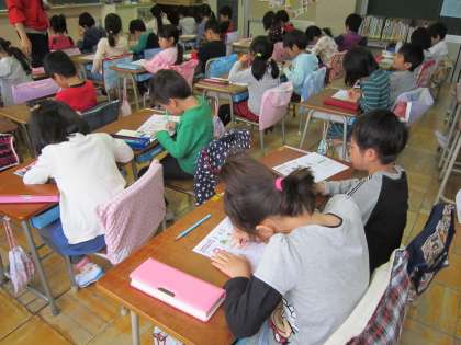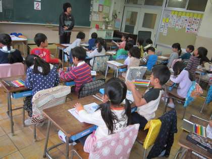 1年算数科「10までの数」 数字の書き方の学習を始めました。一生懸命取り組んでいます。