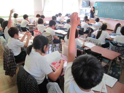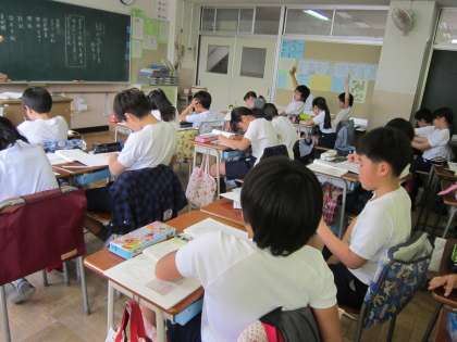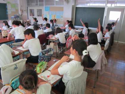 5年国語科「しょうかいポスターを作ろう」 いろいろなポスターについて知り、ポスターの果たす役割について話し合っていました。