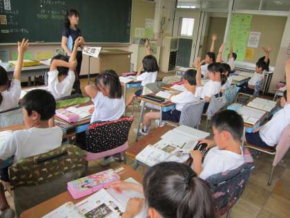 2年算数科「たし算・ひき算」 何十のたし算の問題について、計算の仕方を話し合いながら学習を進めていました。