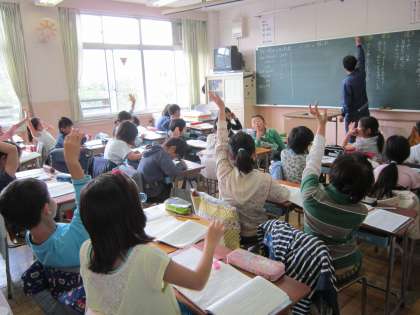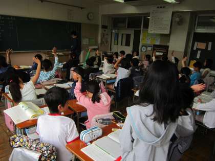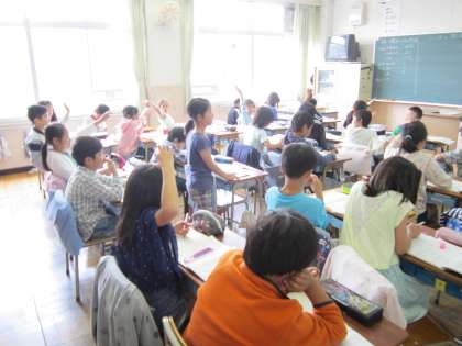 4年国語科「やいとかげ」 読み取りの授業です。読んで感じたことを話し合いながら学習を進めていました。