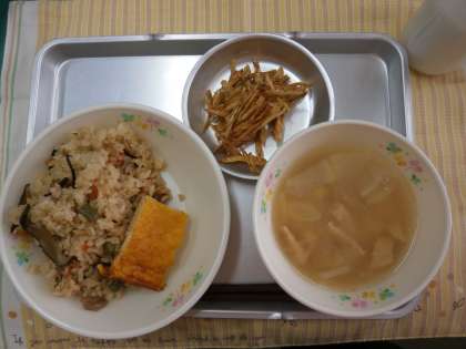 炒めた具を米と一緒に炊きこみました。