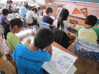 4年社会科「わたしたちのくらしと水」 資料をみながら水が家庭にとどくまでまでの行程をまとめていました。