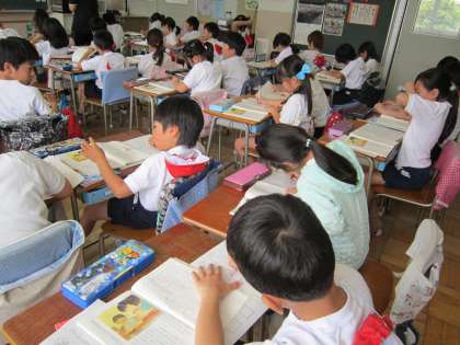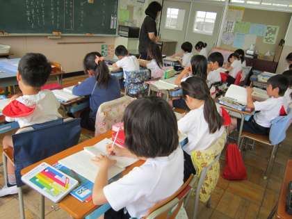 3年国語科「消しゴムころりん」 登場人物の気持ちを読み取り、最後に人物の表情をイラストにしていました。