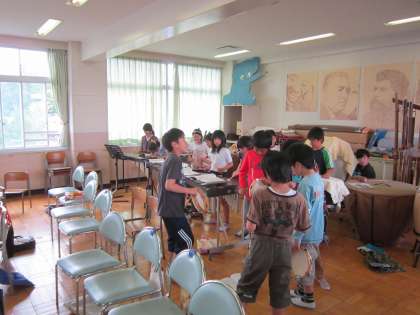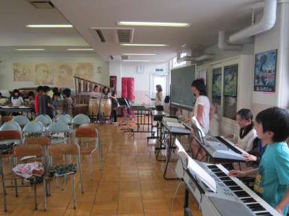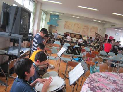 5年音楽科「マンボNo.5」 曲の演奏を鑑賞してから、いろいろな楽器に分かれて演奏する練習をしていました。