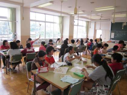 6年家庭科「見直そう食事と家庭生活」 自分の食事の問題点を考え、話し合っていました。