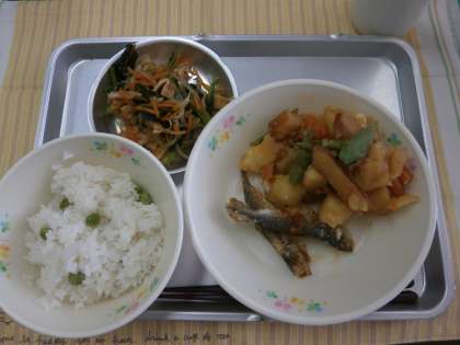 ※今日のグリンピースごはんに入っている「グリンピース」は