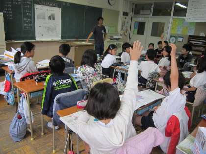 4年社会科「わたしたちの水道」 グラフなどの資料を読み取り、分かったことをまとめていました。