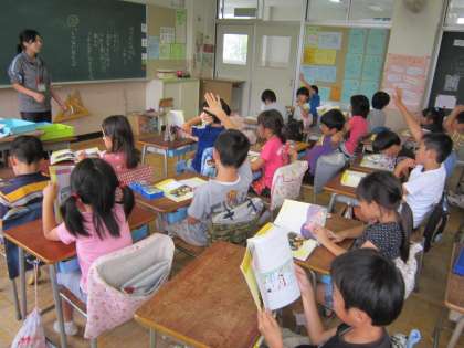 2年道徳「とべないほたる」 仲間の蛍に助けられた飛べない蛍の気持ちについて考え、話し合っていました。