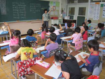1年算数科「たし算」 一けたのたし算の練習問題に取り組んでいました。加えるたし算と合わせるたし算の違いも分かるようになりました。