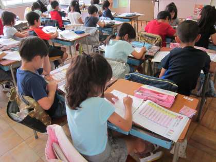 2年国語科 新出漢字の練習に取り組んでいました。新しい漢字をカードにまとめたり、繰り返し練習したり一生懸命学習していました。