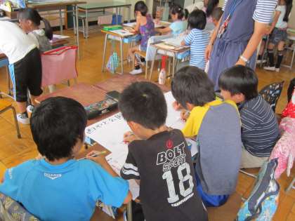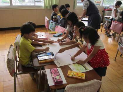 2年生活科「公園たんけん」 調べてきた公園たんけんをグループで、絵にまとめていました。