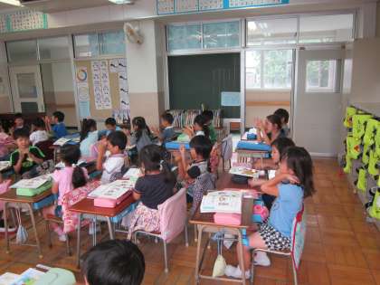1年音楽科「じゃんけんぽん」 みんなでリズムをとって、楽しく歌っていました。