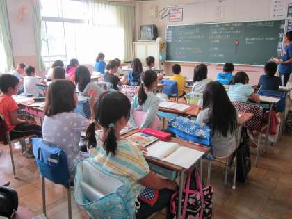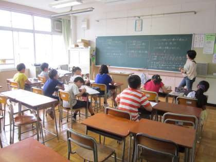 5年算数科「倍数」 2学級3展開習熟度別の授業です。今日は、最小公倍数と公倍数の見つけ方について、一生懸命に学習していました。