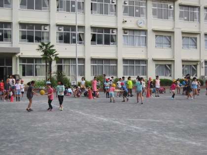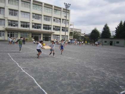 今日は、たてわり班で「がばんボール運び」の集会でした。朝の時間を異学年交流で楽しみました。