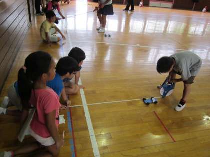 3年理科「風やゴムのはたらきを調べよう」 研究授業でした。ゴムのはたらきを調べる実験です。たくさんの先生方に見ていただいて、一生懸命学習していました。