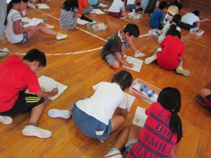 3年理科「風やゴムのはたらきを調べよう」 研究授業でした。ゴムのはたらきを調べる実験です。たくさんの先生方に見ていただいて、一生懸命学習していました。