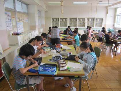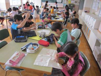 5年家庭科「ぬって作ろう 楽しい生活」 集中して楽しそうに刺し子に取り組み、ランチョンマットを製作していました。