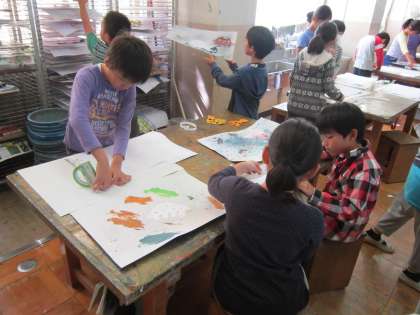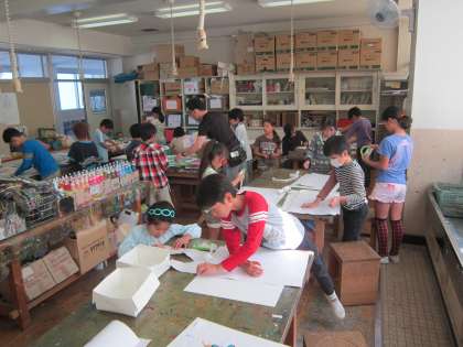 3年図画工作科「ようこそ満天の星空へ」 展覧会に向けて、作品の最後の仕上げをしていました。