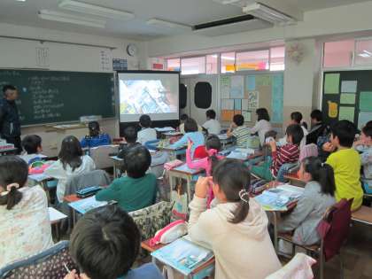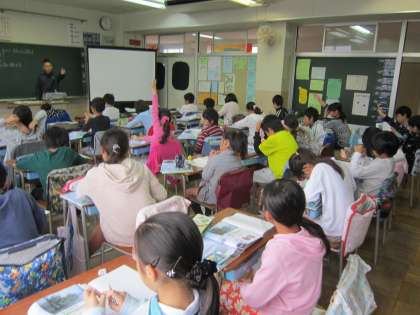 5年理科「台風と天気の変化」 台風が来ると天気はどう変わるか?自分の考えを発表したり、映像を見て学習したり、授業に集中していました。