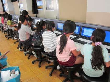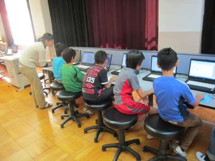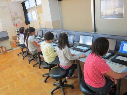 3年総合的な学習の時間「生きもの博士になろう」 調べ学習に入る前に、パソコン操作を教わり、練習していました。