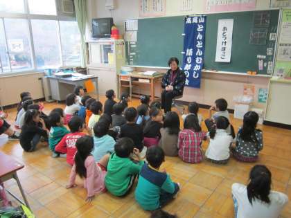 今朝は、とんとん語り部の会の昔話とPTAサークルお話レストランの読み聞かせでした。子供たちは、目を輝かせて聴き入っていました。