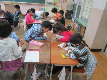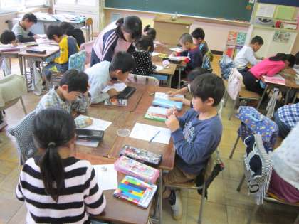 2年生活科「生きものとなかよくなろう」 ザリガニの赤ちゃんが生まれました。虫眼鏡でじっくり観察して、気づいたことをまとめていました。