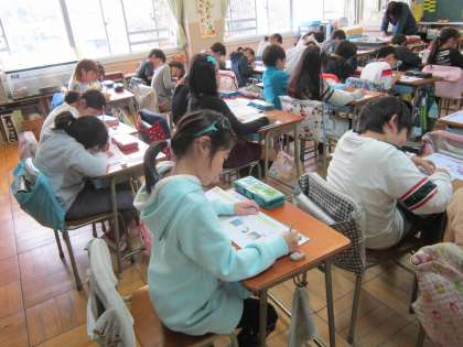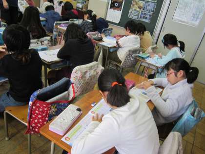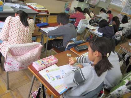 3年国語科「ローマ字1」 や行とら行の書き方の指導を受けて、丁寧に集中して練習していました。