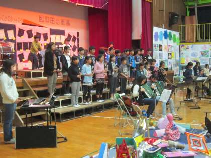 展覧会児童鑑賞日でした。6年生の音楽表現「展覧会の絵より」 「プロムナード」と「キエフの大門」の演奏を聴いたり、友達の作品を鑑賞したり、アートに触れ、みて、探して、感じ取っていました。